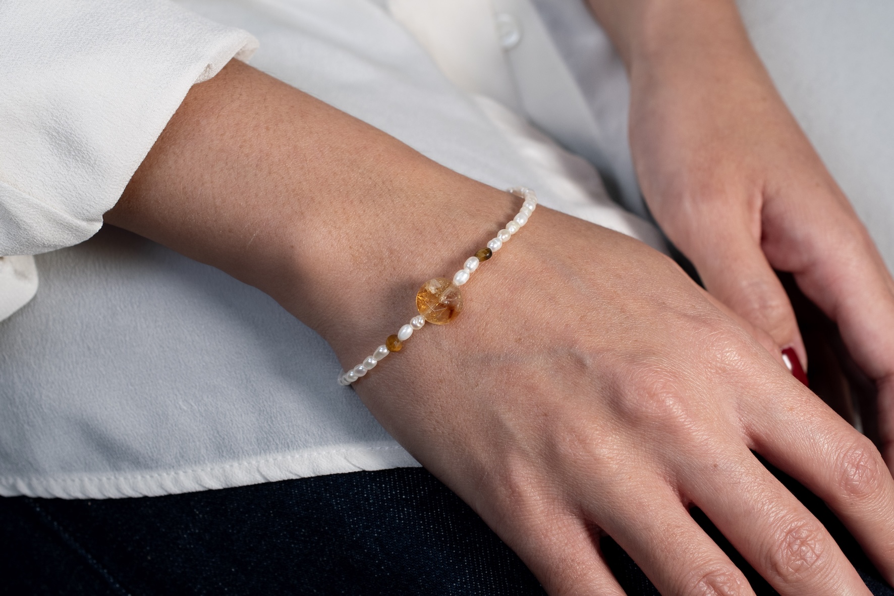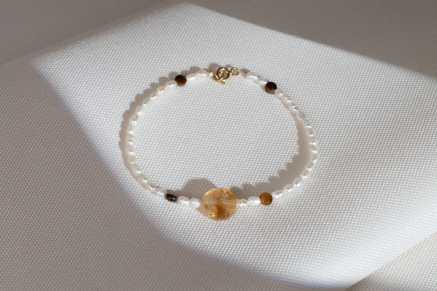 Citrin und Tigerauge mit Süsswasserperle