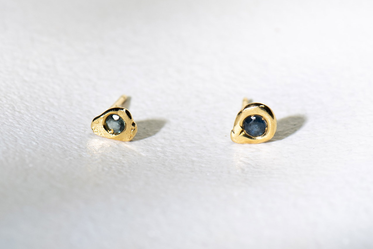 Ohrstecker mit sehr kleinen blauen Saphirsteinen