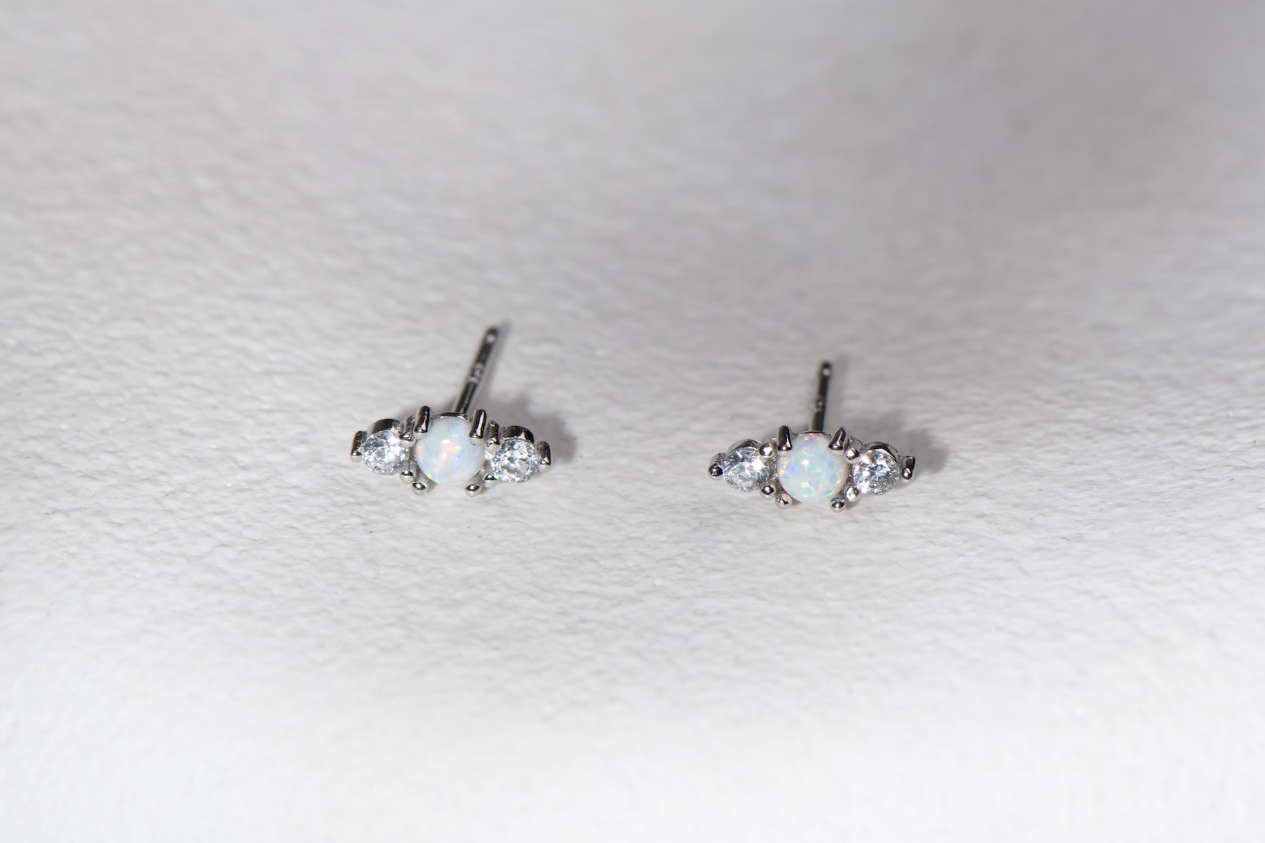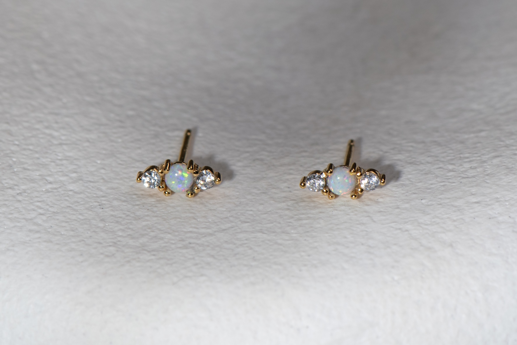 Ohrstecker mit kleinem Opalstein und zwei Zirkonia