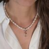 Perlenkette Süsswasserperlen und gefasstem Lodolith-Quarz